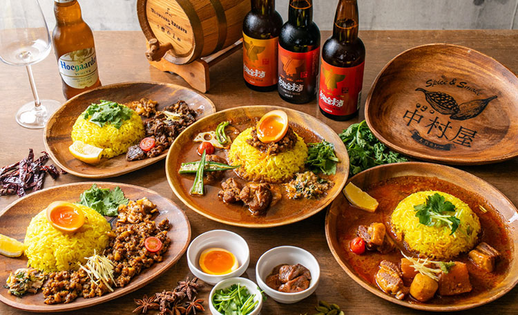 Grilled local chicken and chicken paitan curry, charcoal-grilled chicken, and ice-cold fresh vegetable sticks.
