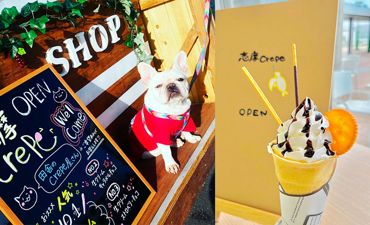 We are Sea Village (Shima Crepe), offering crepes made with ingredients from Itoshima.